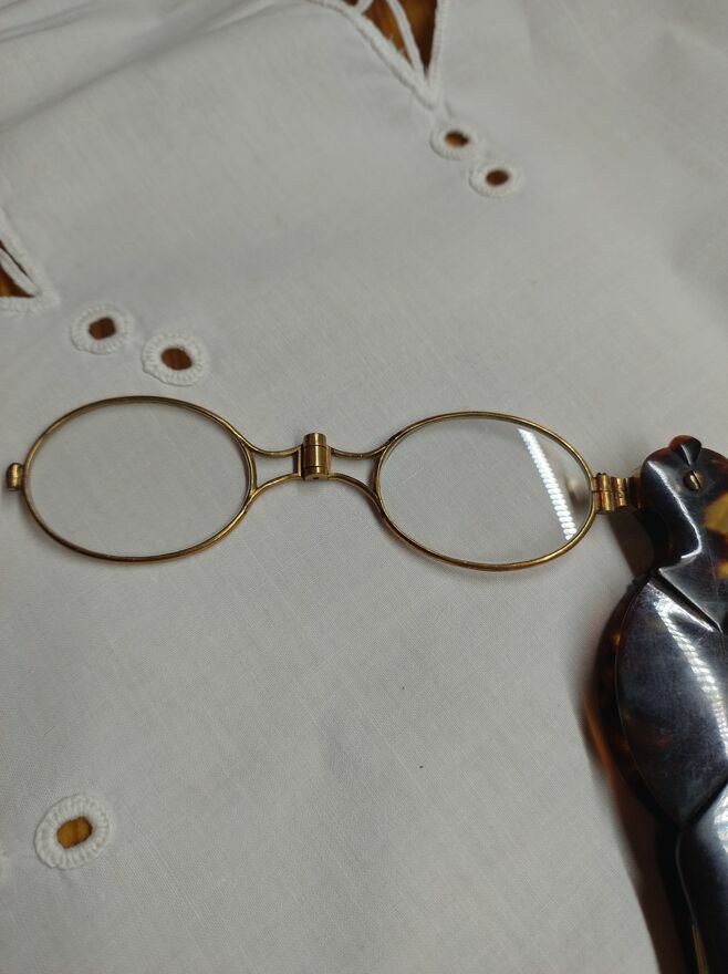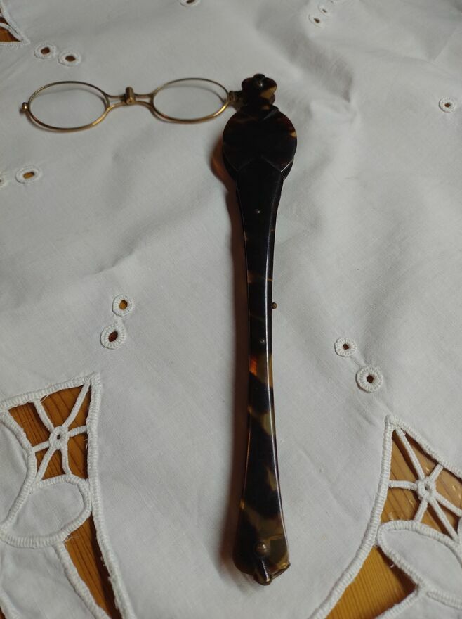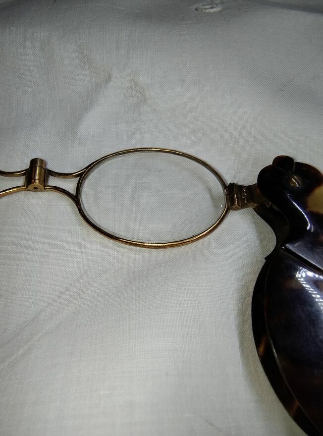 Sprzedam binokle, składany lorgnon w szylkretowej oprawie z okresu koniec XIX wieku.Okulary w oprawkach mosiężnych, szkła "-", składane, chowane w całości w długą rączkę.